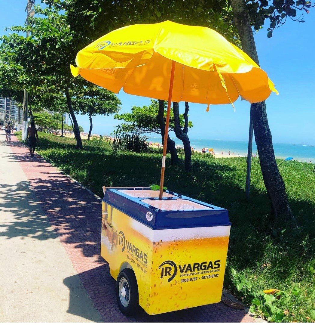 Plotagem por conta do comprador, guarda sol não incluso, rodas em aro de ferro.